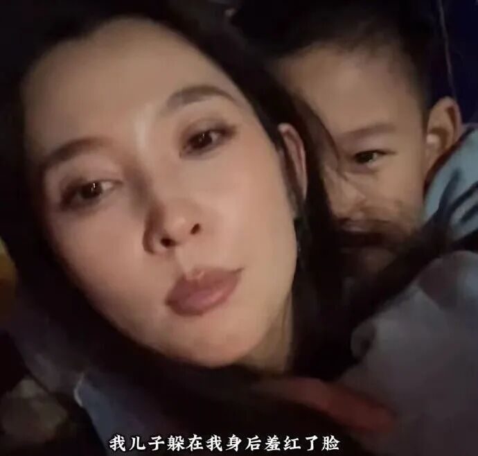 森林北很自然地介绍小男孩,说:我儿子躲在我身后羞红了脸。